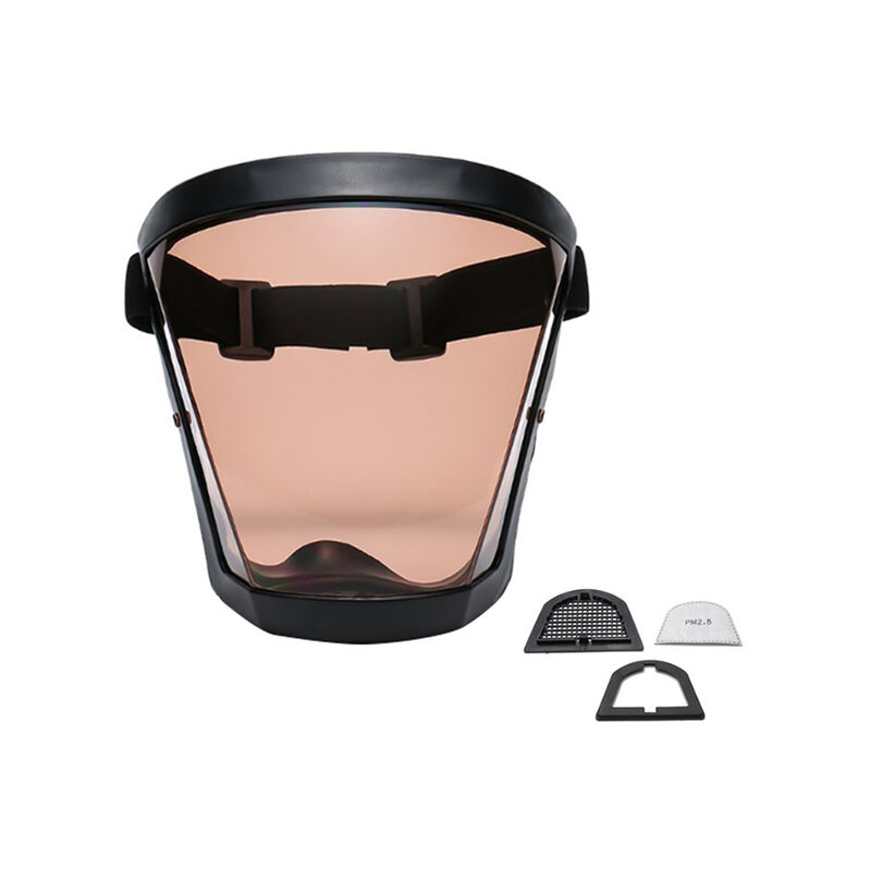 Description: The face shield fits your face for better protection and comfort.Features: 1. High Elastic: The face shield is made of clear PVC material, which is perfect for long-wearing. The nose attachment of the protective shield provides sufficient separation between the nose and the face.2. Reusable and Washable: The face shield can also be used with glasses, and the glasses lenses will not fog up. You can put the protective shield in your pocket and take it with you wherever you go.3. Ventilation Hole Design: The bottom of the face shield's chin is designed with ventilation holes for a comfortable fit. The curved design keeps the protective shield close to the chin.Specifications: Material: silicone, lastic, PVCColor: Black Frame Grey Sheet, Black Frame Tea Sheet, Blue Frame Grey Sheet, Blue Frame Tea Sheet, Grey Frame Grey Sheet, Grey Frame Tea Sheet, Powder Frame White SheetSize: about 17*18.5cm/6.7*7.3inUnique Design: Adjustable straps bring the face shield closer to your
