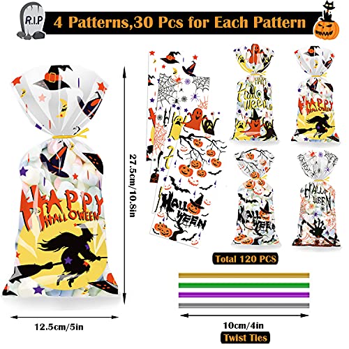 FullJoyHut 120 PCS Sacchetti Cellophane di Caramelle di Halloween Sacchetti Regalo Dolcetti o Trucchi Borsa Sacchetto Biscotti Dolci Zucca Ragno Adesivi per Festa Halloween Party Decorazioni