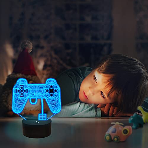 Kit regalo da gioco: questa lampada 3D illusione può mostrare il gamepad quando si illumina, con una tavola piatta ottica acrilica con incisione laser può dare un incredibile effetto visivo 3D. Questa luce notturna 3D è un gioco creativo logo accessori geek gadget regalo per bambini e famiglia