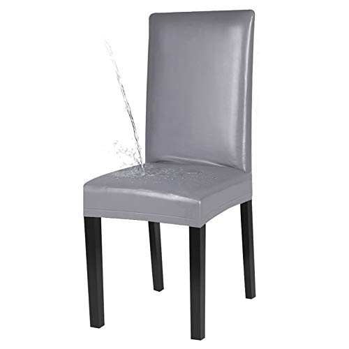 Fuloon Coprisedie con schienale, protezioni per sedia in pelle elasticizzata artificiale, coprisedili universali resistenti all'olio e all'acqua(Pu modello solido grigio, 6 Pezzi)