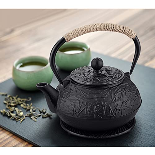 Fuloon Teiera in Ghisa Giapponese con Infusore, 30oz/0.9L Antiche Teiera Cinesi Orientale Design Metallo Nero Teiera Singole con Filtro (Nero)