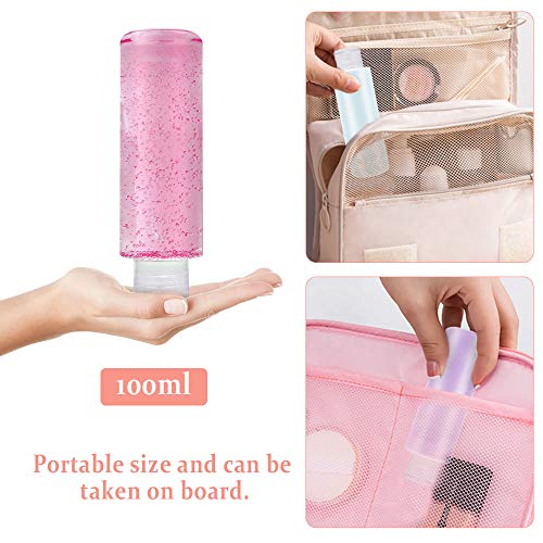 Facile da trasportare: la dimensione delle bottiglie da viaggio: 13 x 4 cm. Può contenere 100 ml. Facile da trasportare e adatto per l'uso in borse per il trucco, borse, zaini e valigie. Riduci il tuo carico e semplifica il tuo viaggio. Il contenitore trasparente è ideale per viaggi, campeggio, luna di miele, viaggi d'affari, feste.