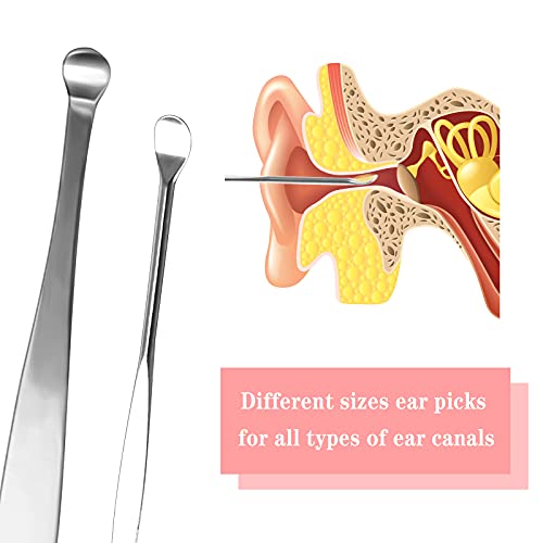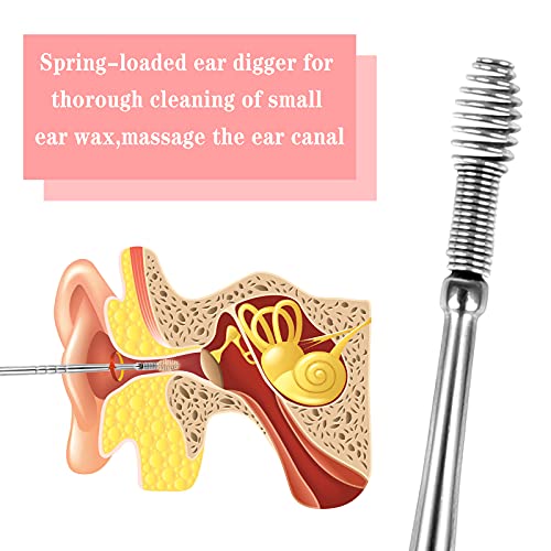 Materiale di alta qualità: il dispositivo di rimozione del cerume è realizzato in acciaio inossidabile di alta qualità, che è antiruggine, anticorrosione, antiruggine e durevole. Inoltre, è innocuo e non provoca irritazione alle orecchie. Adatto a persone diverse.