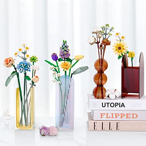Fun4kid Set di kit da costruzione per bouquet di fiori, mattoncini di fiori artificiali, decorazione per la casa, collezione botanica da 534 pezzi per adulti