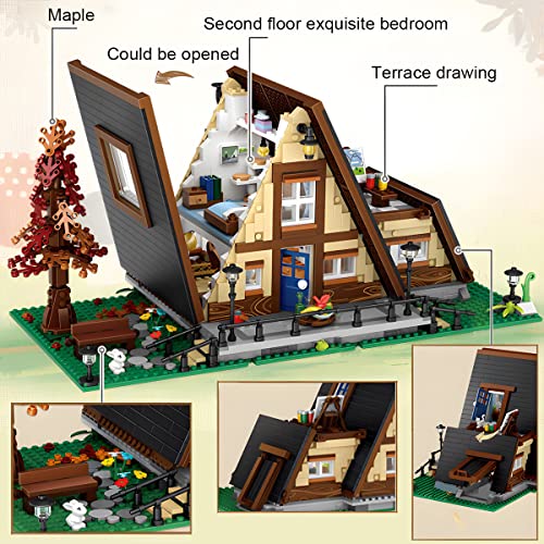 Fun4kid Set da costruzione a forma di capanna in legno a forma di A Capanna forestale triangolare Mini blocco da costruzione, kit modello giocattolo da costruzione 1917 pezzi per adolescenti e adulti