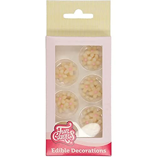 FunCakes Decorazioni di Marzapane Crisantemo Bianco/Rosa: pronto per l'uso per la decorazione di torte, perfetto per cupcakes, muffin e altro, certificato senza glutine, set / 30