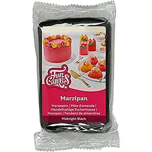 FunCakes Fondant de Almendras Midnight Black: facile da usare, gusto delizioso, flessibile e liscio, facile da stendere, perfetto per la decorazione di torte, halal, kosher e senza glutine. 250 gr.
