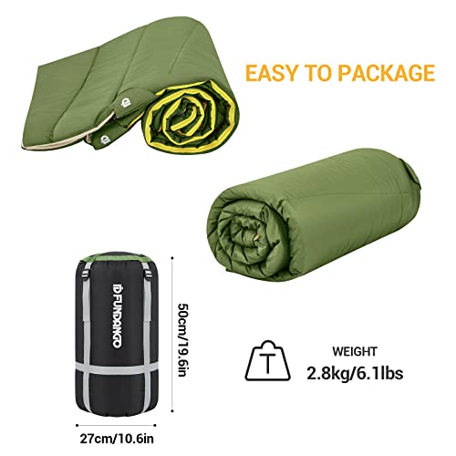 FUNDANGO Sacco a Pelo Matrimoniale 4 Stagioni con 2 Cuscini, Separabile in 2 Sacchi a Pelo Singoli, Sacco a Pelo Doppio da Campeggio, Sacco a Pelo Adulti
