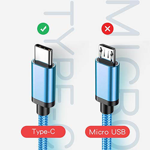 Fundro - Cavo USB C per ricarica veloce per Samsung Galaxy S9, in nylon intrecciato. Compatibile con Samsung Galaxy S8, S8 Plus, Note 8, Pixel 2, Huawei P10, Nintendo Switch, Moto Z e altri modelli. 2Pack 3.3FT Coralline Blue