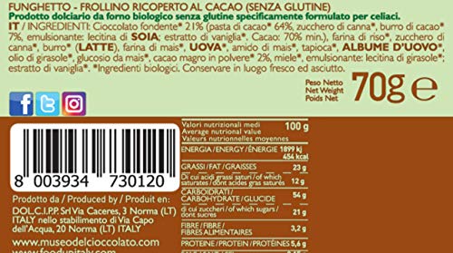 FUNGHETTO Frollino bio ricoperto al cacao 70 g (Senza Glutine)