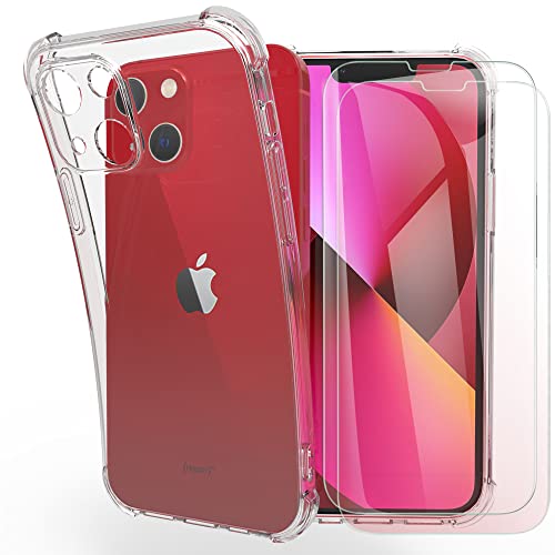 FUNHULLUN Cover per iPhone 13 Mini 5.4" con 2 Pezzi Pellicola Protettiva in Vetro Temperato,Custodia Trasparente Silicone TPU Case per iPhone 13 Mini 5.4"