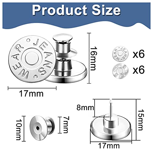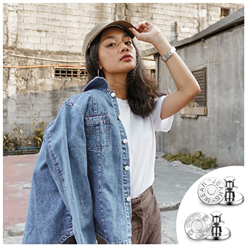FuninCrea 12 Pezzi Bottoni Jeans, Bottoni Rimovibili Jeans con 4 Stile, Regolabile e di Ricambio Bottoni per Stringere Jeans, Bottoni Fit Jeans per Pantaloni, Giacche, Pantaloni (Argento)
