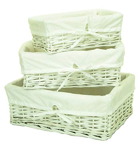 FunkyBuys reg, colore: bianco, Set da 3 ceste in vimini, impilabili, rettangolari, con rivestimento bianco