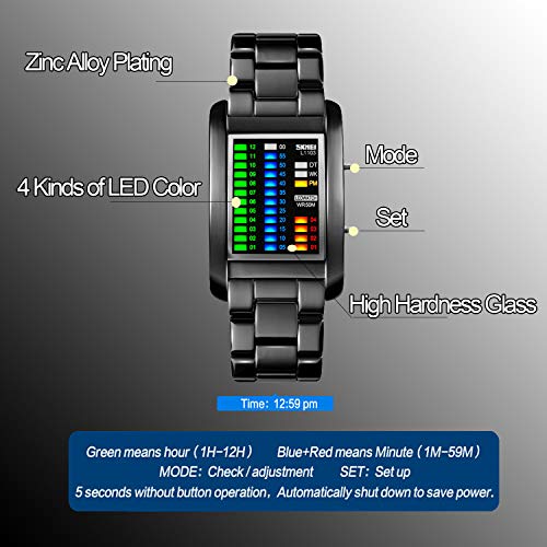 Funkytop Binario Matrix LED Digital Orologio impermeabile Mens Classic creativo moda nero placcato orologi da polso