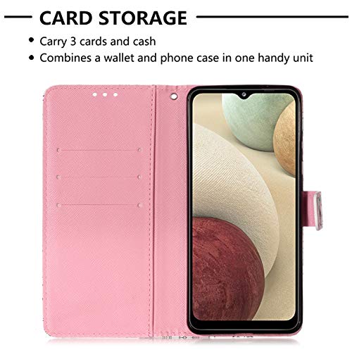 Funluna Custodia a portafoglio per Samsung Galaxy A12, in pelle PU, con funzione di protezione a portafoglio, con supporto e carte, antiurto, in silicone, con chiusura a farfalla, rosa