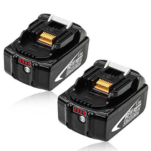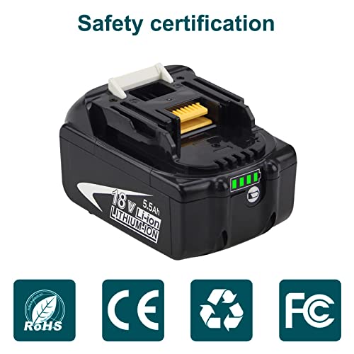 FUNMALL 2 Pezzi 18V 5,5Ah BL1860B Ricambio per Makita 18V Batteria 5,5Ah BL1850 BL1860 BL1850B BL1840B BL1840 BL1830B 194205-3 194309-1 194204-5 196399-0 Batterie per Utensili