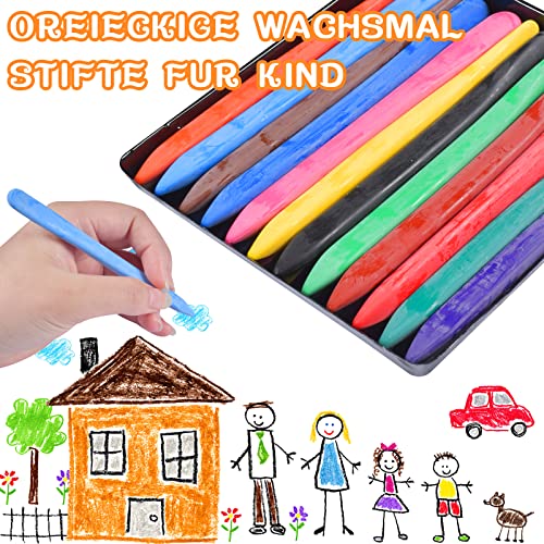 Funmo 12 matite pastelli a cera,pastelli triangolari,pastelli colorati,Pastelli per Bambini,Cera Pastelli Lavabili,adatti alla pratica del disegno dei più piccoli