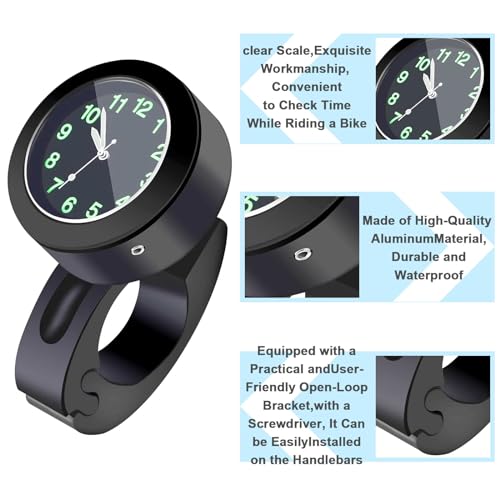【Facile da installare】l'orologio da manubrio per moto con supporto ad anello diviso è facile da installare e può essere montato sulla parte diritta del manubrio con viti in acciaio inossidabile. Nessuna perforazione richiesta.