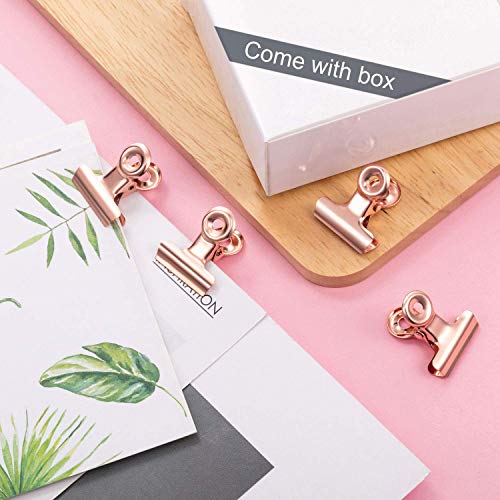 Funmo 30 Pezzi Molla Fermacarte Metallo Fermafogli Clip Oro rosa Bulldog Clips per Carta File Documentazione Foto Panni Foglio Lettera Sacchetti Adatto Ufficio Casa Negozio 22MM