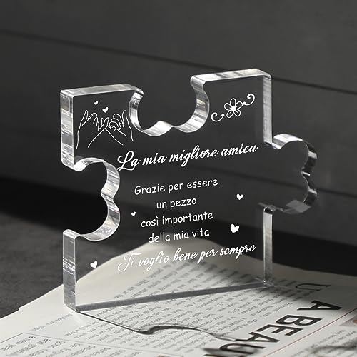 Funnli Regalo Donna, Regalo Amica Ornamento a Puzzle in Acrilico Inciso, 8,5 x 7 CM Decorazione Della Tavola Regalo Amica Compleanno, Regalo Migliore Amica Compleanno, Regalo Amica Natale