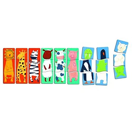 Wooden case with 27 pieces made of lacquered wood to create 9 different puzzles of fun animals: Cow, L we, penguin, sheep.
