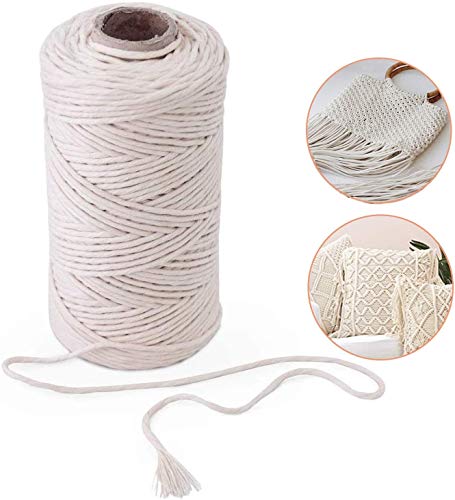 FUNNY HOUSE Macrame Corda Naturale Cordoncino, DIY Handmade Craft Cotone Legando Filo Corda, Filo per Maglieria Artigianale Cordone, Appendiabiti per Piante 3mm * 200m