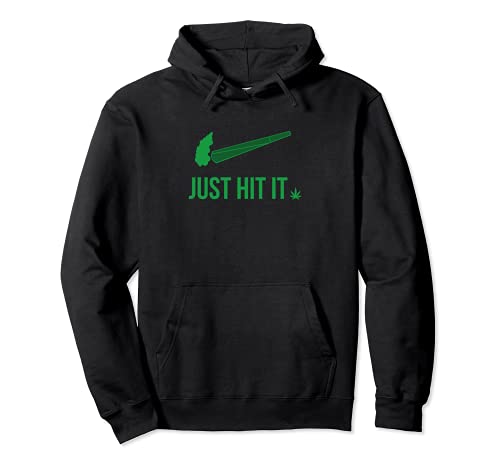 Just Hit It funny cannabis, weed features a blunt with smoke and lettering in green with a small weed logo. Tribute to Mary Jane and 420.