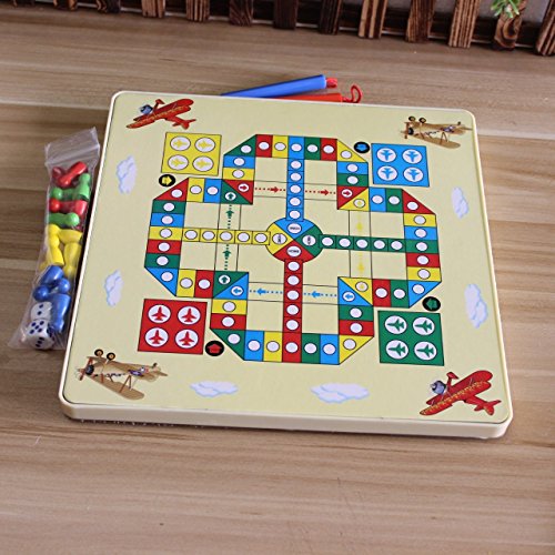 ** La parte posteriore è un gioco degli scacchi Flying Flight sul vassoio, ci sono diverse bandiere e cubi di colore nella confezione, in modo che i bambini possano giocare con gli amici.
