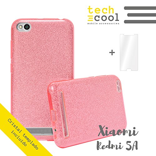 Funnytech Cover Xiaomi Redmi 5A Colore Rosa Brillantini Glitter + Vetro temperato Custodia Brillantini Glitter, Manufatto in Silicone Gel Alta qualità