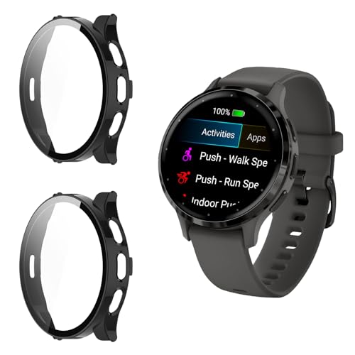 Funrae Custodia Compatibile con Garmin Venu 3S [2 Pezzi], Cover Protettiva Telaio Rigida PC [Con Vetro Temperato] HD Clear Anti-Graffio Protezione Case - Nero