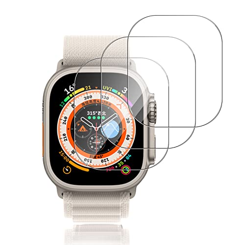 Funrae Pellicola Protettiva Compatibile con Apple Watch Ultra 49mm, [3 Pezzi] 2.5D Proteggi Schermo in Vetro Temperato Copertura Completa Anti Graffio Senza Bolle HD Protezione Film - Transparente