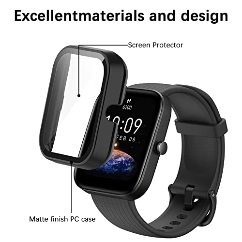 【Protezione a Tutto Tondo】La cover di Amazfit Bip 3/Amazfit Bip 3 Pro è realizzata in PC materiale di alta qualità, ha una buona resistenza agli urti e alle cadute la sua cassa robusta e i bordi rialzati possono proteggere meglio l'orologio. Il robusto vetro temperato protegge il tuo schermo dai graffi.