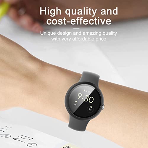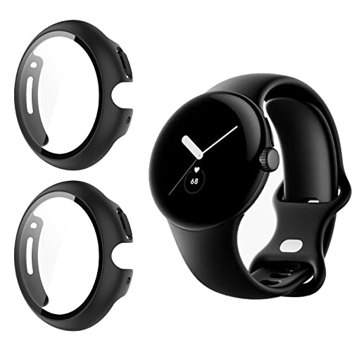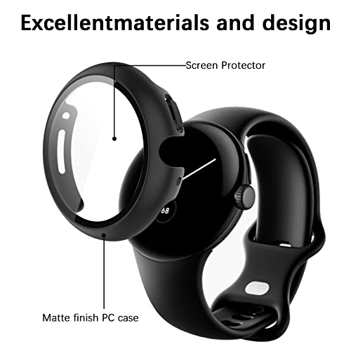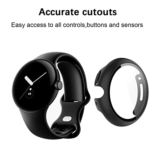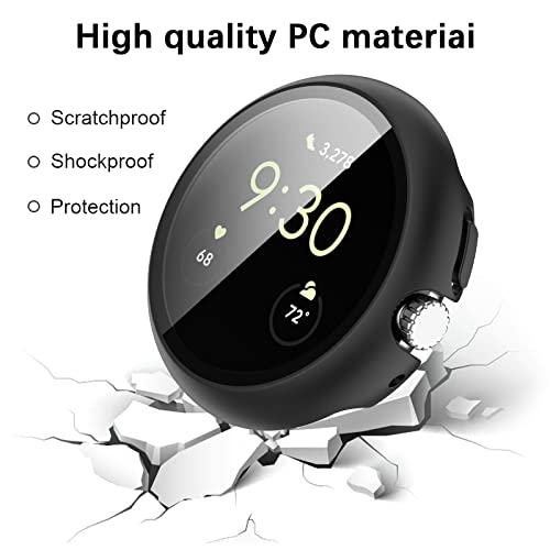 Funrae [2 Pezzi Custodia Compatibile con Google Pixel Watch, Cover Protettiva Telaio Rigida PC [Con Vetro Temperato] HD Clear Anti-Graffio Protezione Case - Nero