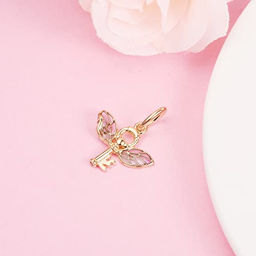 FUNSHOPP Ciondolo a forma di chiave in argento 925 con alata di Natale, adatto per braccialetti originali Pandora, gioielli alla moda