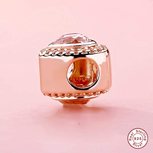 FUNSHOPP 2018 - Ciondolo a forma di cuore in argento 925 con cristalli rosa autunnali, adatto per braccialetti Pandora originali