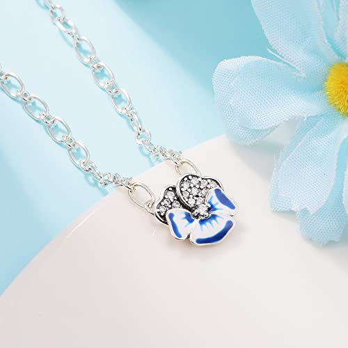 2022 - Collana con ciondolo a forma di fiore blu viola del pensiero per le donne