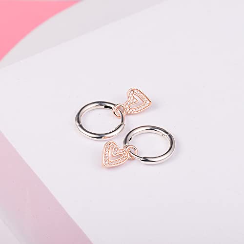FUNSHOPP Orecchini a cerchio a forma di cuore a mano libera per San Valentino 2022, in argento 925, adatti per braccialetti Pandora originali, gioielli alla moda