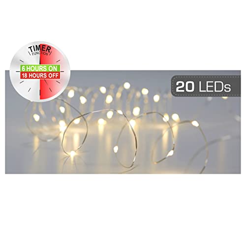 MIK Funshopping Catena luminosa a LED micro fili, funzionamento a batteria (20 LED con timer, bianco caldo)