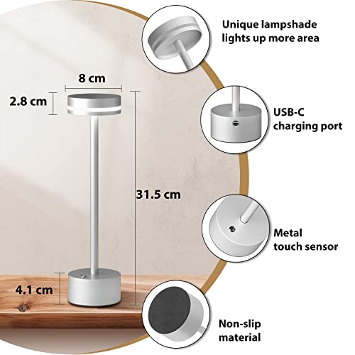 FUNTAPHANTA Lampada da tavolo a LED a batteria con interruttore touch, dimmerazione a 3 livelli, batteria ricaricabile da 4000 mAh, porta di ricarica USB-C, luce calda da 3000 K, soggiorno, giardino