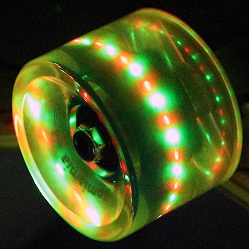 FunTomia 4 Pezzi Longboard/Skateboard/Miniboard Ruote (Big Wheels) 70x51mm 80A incl. Mach1 Cuscinetti a Sfera, Magnete Spacer (Verde Brillante - con LED)