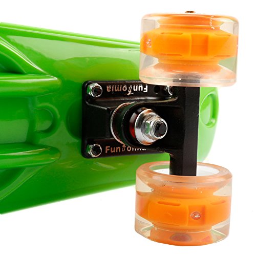 FunTomia Skateboard Big Wheel 57cm Mini Board Cruiser in plastica e ruote Skateboard Miniboard con stile anni 70 con T-Tool (verde - con LED)