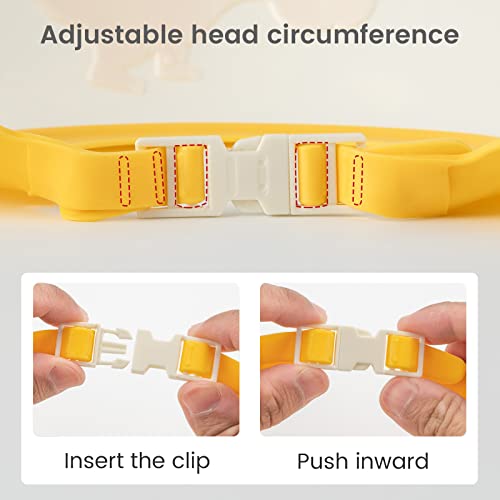 【FACILE UTILIZZO】 Basta rilasciare il pulsante regolabile e toccare la parte anteriore della cuffia da bagno con la fronte del bambino, quindi allacciare il pulsante regolabile sulla coda, quindi otterrai una deliziosa visiera da bagno per bambini a forma di corona!