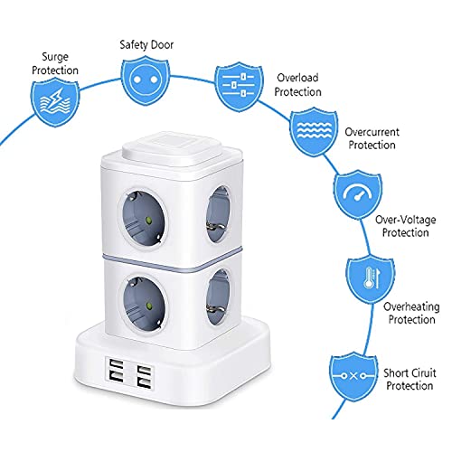 FUNWS-Ciabatta Multipresa con USB,Prese Multiple Elettriche,8Prese,4 USB,Protezione da Sovratensione?Adatto per Ufficio, Casa o Viaggi(2500W)