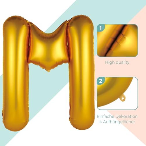 FUNXGO Palloncino Lettere M oro - Palloncini Compleanno - Decorazioni Compleanno - Vola con l'Elio - Feste Decorazione di Compleanno lettere Palloncino oro lettera M
