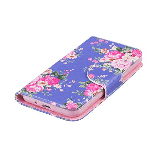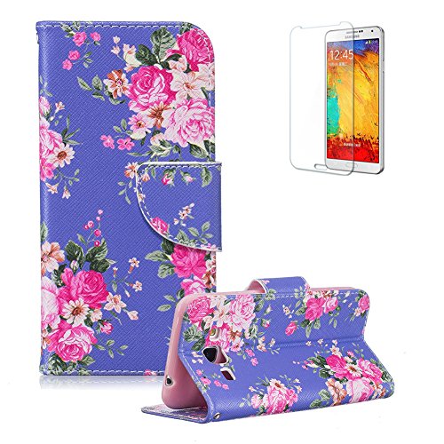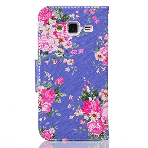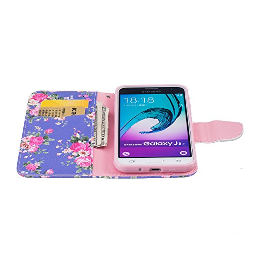 Funyye Custodia Per Samsung Galaxy J3 2015/2016 in Pelle Cover e Pellicola Protettiva,Fiore Rosa in Viola Disegno Portafoglio Copertura [Tasche per Soldi e Carte] [Chiusura Magnetica] Interna Morbida Silicone Cover Per Galaxy J3 2015/2016 J320 Flip Protection Case with Screen Protector