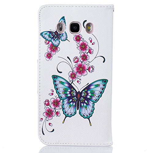 Funyye Custodia Per Samsung Galaxy J5 2016 Cover Pelle Portafoglio Libro Copertura con [Gratis Pellicola Protettiva] Supporto Stand Porta Carte Chiusura Magnetica protettivo Caso Per Samsung Galaxy J5 2016 Modello J510 Flip Wallet Case with Free Screen Protector - Fiore e Farfalla