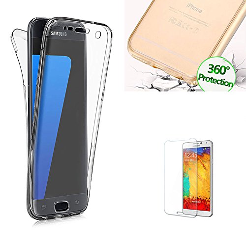 Funyye per Samsung Galaxy S6 Edge Plus Cover 360 Gradi Fronte Retro Silicone Morbido Sottile Leggero Gel Protettiva Case Flessibile Slim Thin Skin Shell Protezione Custodia con [Pellicola Protettiva] Per Samsung Galaxy S6 Edge Plus Full Body Gomma Antiurto Bumper Shell - Trasparente