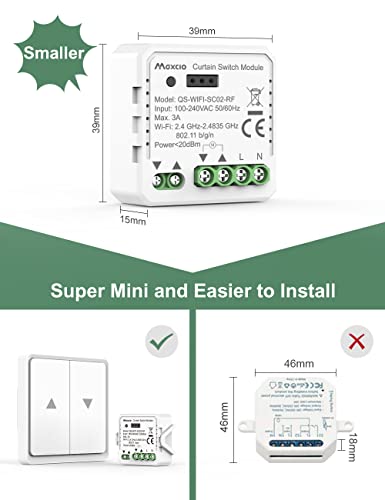 Funzione Percentuale - Interruttore Tapparelle WiFi con Telecomando RF, Maxcio Modulo Interruttore Wifi per Tapparelle Elettriche, Compatibile con Alexa e Google Home, 600W