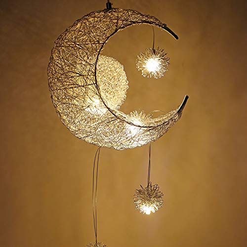 Lampada a sospensione a forma di luna e stella: delicata luna in un design moderno con stelle, così bella ed elegante, crea un'atmosfera calda e fatata, garantisce un'illuminazione ambientale pacifica e romantica per la vostra casa