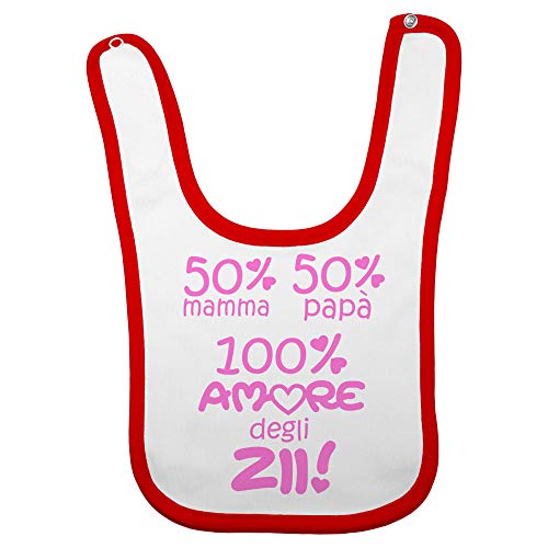 Fupies Bavaglino neonata 50% mamma 50% papà 100% amore degli zii, Rosso